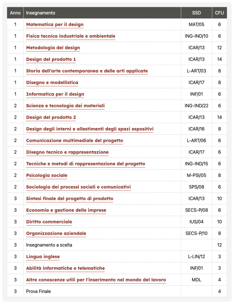 Il corso di laurea in DESIGN DEL PRODOTTO E DELLA MODA prepara una figura di Tecnico del Progetto in grado di sostenere tutte attività che portano dalla fase di ideazione a quella della produzione e distribuzione sul mercato. Al laureato in uscita si aprono ampie prospettive di impiego in tutte le attività operanti tanto nel campo del Design di prodotto, quanto nel campo del Design della moda, sia professionali sia in azienda, oltre che nelle articolate declinazioni della progettazione industriale.