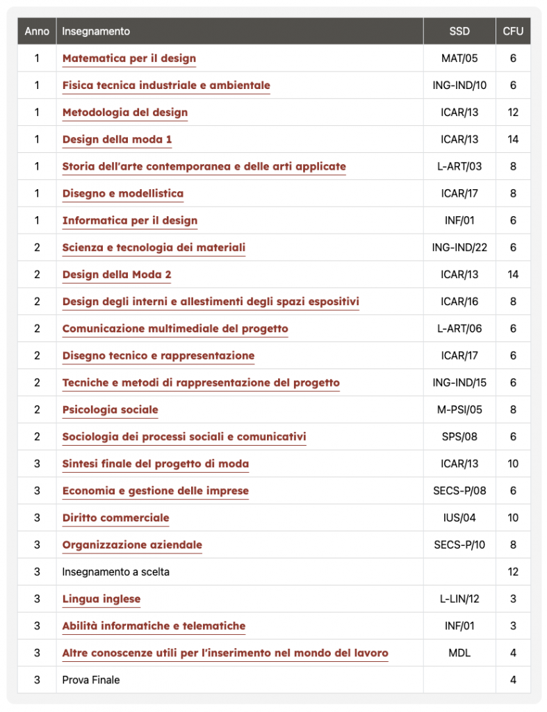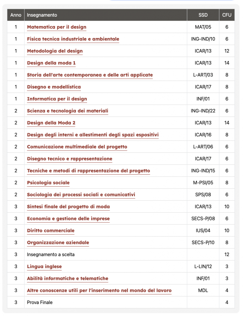L’obiettivo caratterizzante questo corso di laurea in DESIGN DEL PRODOTTO E DELLA MODA è la formazione di un profilo integrato con competenze operative sia nel campo del design del prodotto, sia in quello del design della moda con una enfasi particolare, in entrambi i casi, per la comunicazione e la multimedialità. In ogni caso in Corso di Laurea intende formare una figura di progettista capace di unire alle conoscenze metodologiche per lo sviluppo del progetto, quelle strumentali utili alla sua corretta contestualizzazione e realizzazione, tenuto conto dei vincoli e delle risorse del sistema produttivo in cui opera. Questa opportunità di caratterizzare in più sensi una formazione integrata si esprime mediante la possibilità di seguire insegnamenti storico-critici, tecnico-scientifici e di supporto alla progettazione e laboratori progettuali web based. La sperimentazione progettuale viene svolta sia nei laboratori virtuali, sia in altre forme di didattica interattiva e nella prova finale di laurea.Tali laboratori virtuali saranno svolti nell’ambito delle altre conoscenze utili per l’inserimento nel mondo del lavoro e come parte integrante di alcuni insegnamenti specifici, laddove il docente ritenga opportuno integrare, insieme alle attività di didattica interattiva, una parte laboratoriale che a titolo esemplificativo e non esaustivo potrà essere articolata: