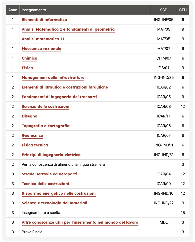 Il Corso di Laurea in ha lo scopo di formare figure professionali che attraverso un’ampia e significativa conoscenza delle scienze di base sviluppino attraverso l’apprendimento delle discipline ingegneristiche una competenza di carattere generale nel campo delle opere civili (strutturali, geotecniche, idrauliche, delle infrastrutture e sistemi di trasporto, edilizia e ambientali (progettazione e gestione degli interventi di difesa del suolo e di tutela dell’ambiente e dei relativi impianti/sistemi/strutture) e per la difesa dai rischi naturali.