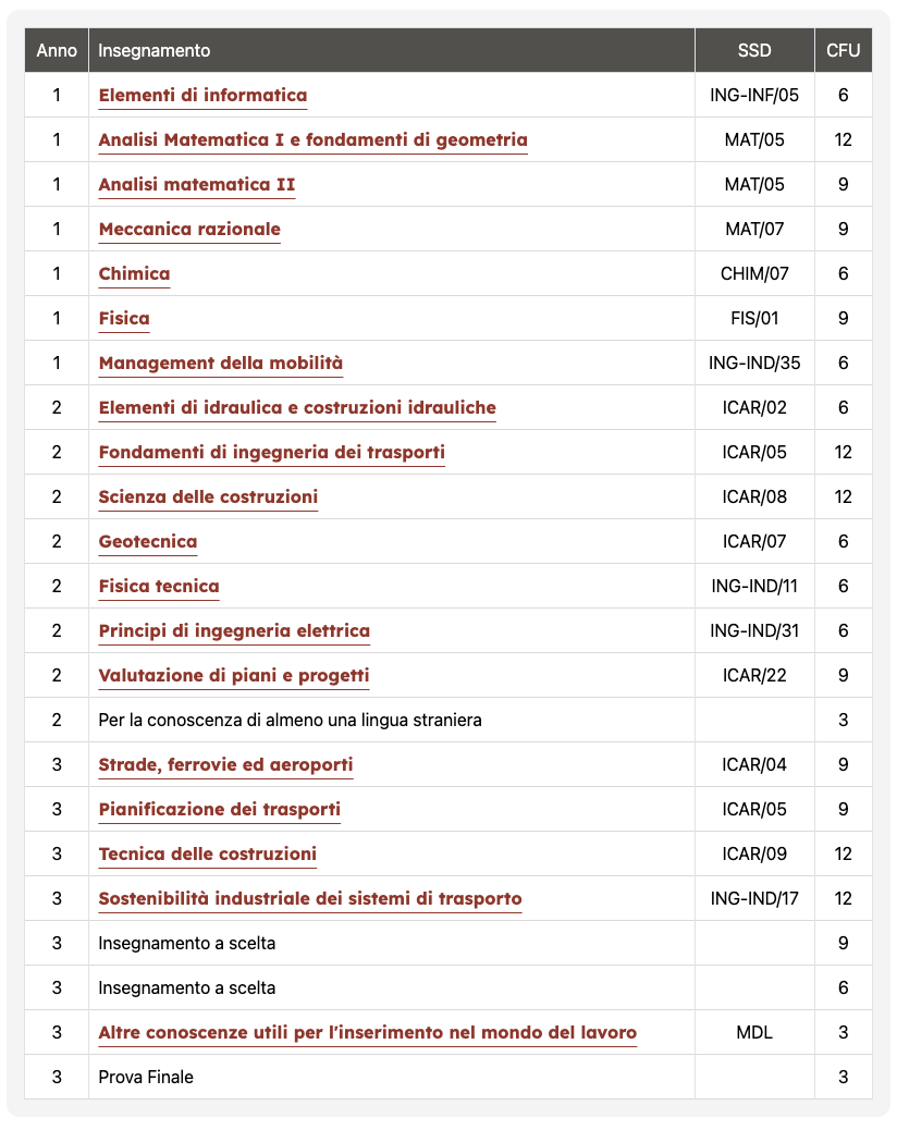 Laurea in Ingegneria delle Infrastrutture per una Mobilità Sostenibile L-7