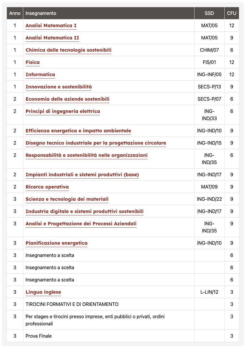 Il Corso di Studio di Ingegneria Gestionale indirizzo in “Economia Circolare” ha come obbiettivo quello di trattare tematiche di sviluppo sostenibile concentrandosi soprattutto sul diffuso e radicale rinnovamento delle competenze manageriali, sia nelle imprese impegnate nella trasformazione dei loro modelli di produzione, sia in quelle interessate ad operare nei business direttamente derivanti dalla circular economy stessa.