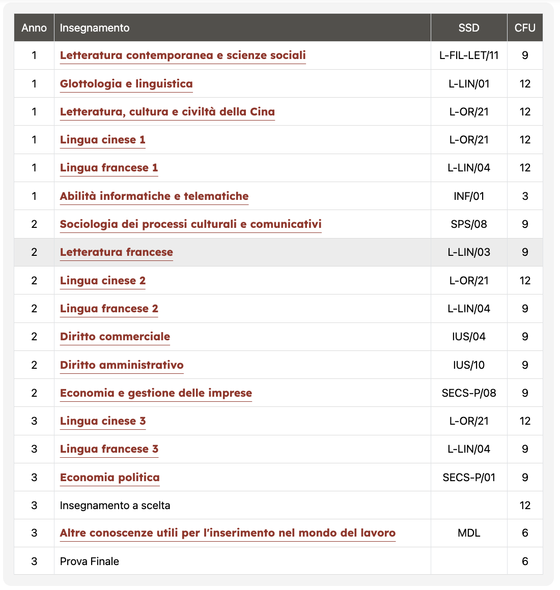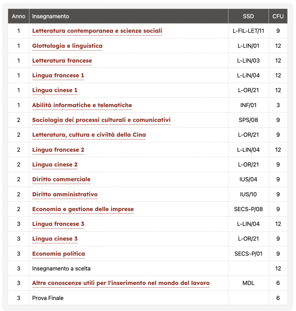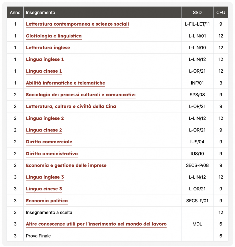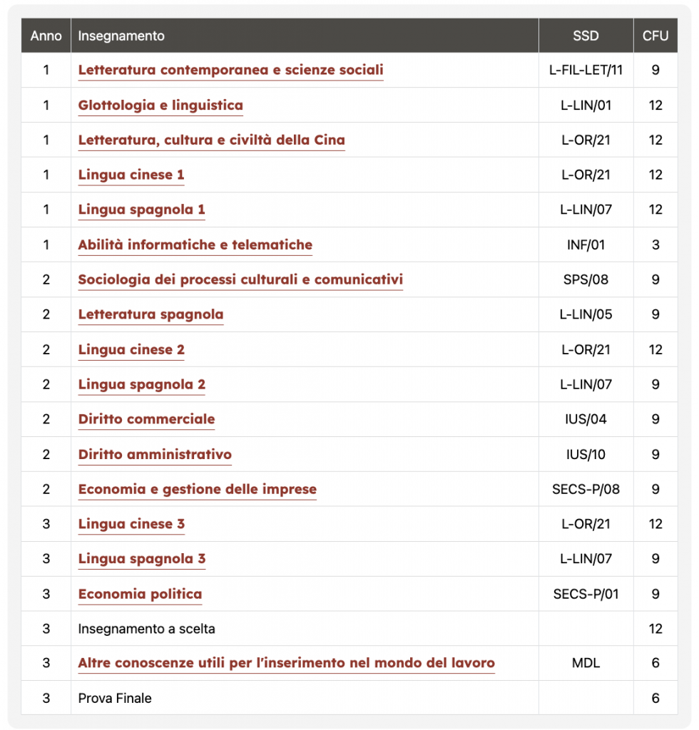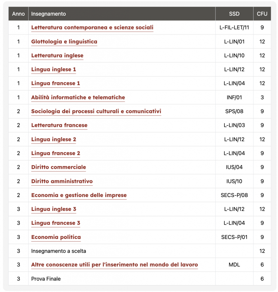 Il corso offre una preparazione linguistica e culturale in due lingue straniere (a scelta tra quelle attivate nell’offerta formativa) oltre all’italiano, integrata dalla conoscenza degli aspetti giuridici, economici, socio-culturali con particolare riguardo ai registri propri delle organizzazioni imprenditoriali, con particolare riferimento al commercio internazionale e al management didattico) che operano in ambito internazionale. Nel corso della sua carriera, lo studente avrà inoltre la possibilità di fare esperienza all’estero usufruendo delle possibilità offerte dai programmi Erasmus+, dalle Camere di Commercio Italiane all’Estero e tramite Short Term Mobility.