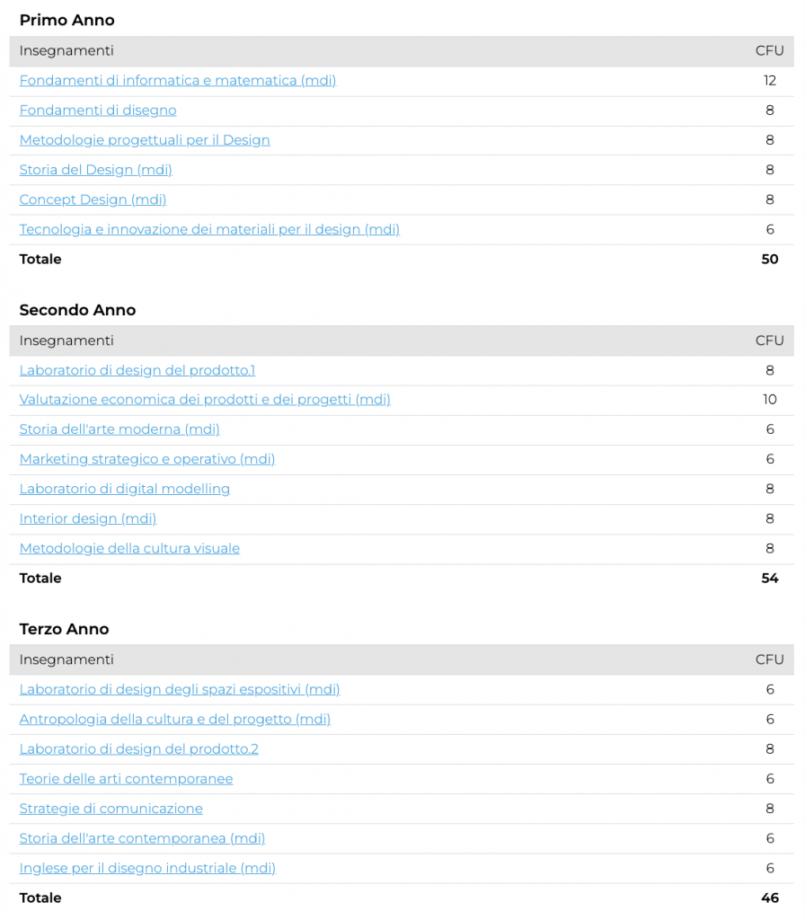 Il percorso formativo intende trasmettere agli studenti la ‘cultura del progetto’ come valore e come mezzo d’innovazione e strategia ponendo attenzione alle diverse aree di declinazione del Design quali quella progettazione del prodotto e del processo – sia per la Moda che per il Design – il marketing, la comunicazione e la distribuzione. Il Corso di Studio prevede quindi l’acquisizione da parte dello studente delle conoscenze teorico-pratiche necessarie allo svolgimento delle attività progettuali a partire dalla fase di ideazione del prodotto/processo fino alla sua realizzazione.